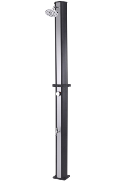 Denne sekskantede solbruser fra Swim & Fun i designet Milano XL rummer en stor varmtvandsbeholder på hele 35 liter. Du kan dermed nyde en skyller under det varme vand inden du hopper i poolen. Hvis du går direkte i poolen uden at skylle dig først, tilføjer du poolvandet op til 200 gange flere bakterier, end hvis du skyller dig under en havebruser først.