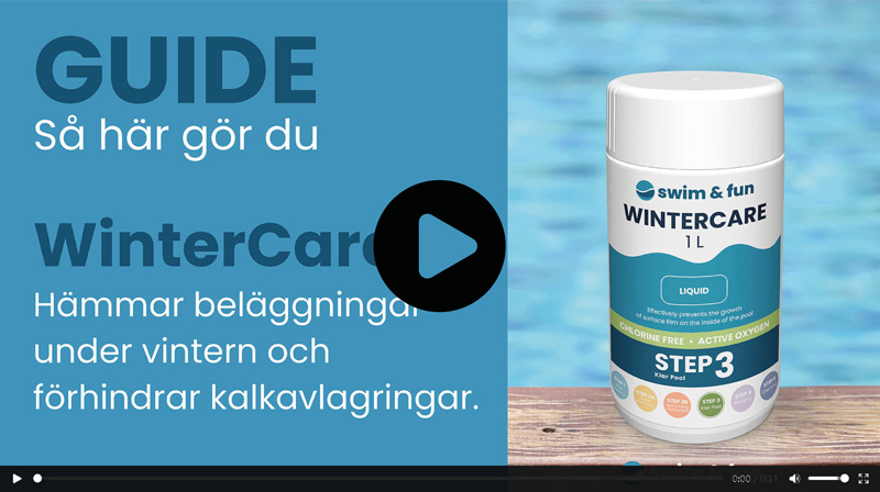 WinterCare är ett kraftfullt förebyggande medel som används för avstängning och vinterisering. WinterCare hämmar beläggningar på vintern och förhindrar kalkutfällning. Tillsätts i poolen när den stängs för säsongen och sedan ca två veckor innan poolen tas i bruk igen.