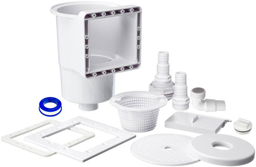 Skimmer kit used when upgrading steel wall pools with cartridge filter pump to an external sand filter systems. The skimmer cleans the water so the pool water is kept clean and clear, and lead the water to the sand filter system, where it is cleaned effectively before it is returned to the pool via the enclosed return tube.