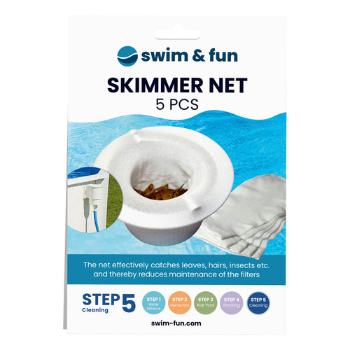 The net effectively pick up dust, pollen, leaves, hair, insects and the like before it reaches the filter pump. It extends both the filter and pump life. The filter bag is stretched over the skimmer basket. Can be cleaned in the washing machine and can be used again and again. Pack of 5 pcs.