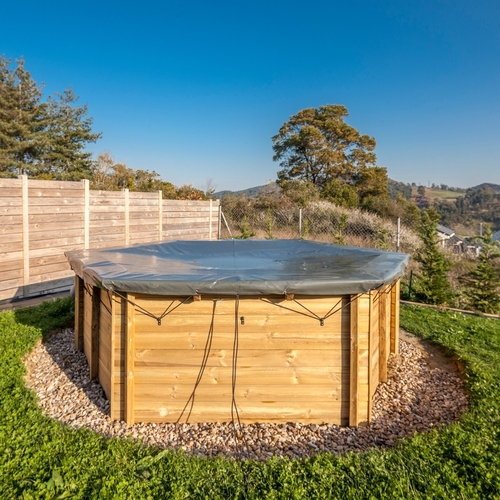 The winter covers allow covering the pool during the winter and avoid filling the pool with dirtiness such as leaves or small animals. In addition, they protect the pool from the ice, prevent possible falls and maintain the water temperature at night.All the winter covers from GRE range carry a water evacuation to the middle of the cover and the necessary elements to fix the cover to the structure of the pool.