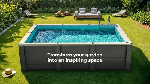 This composite pool combines design, high quality, and low maintenance. It is a square above-ground composite pool that offers a modern look and long durability. Suitable as an outdoor swimming pool for the whole family, and with the complete pool package, you can quickly get started enjoying warm summer days.