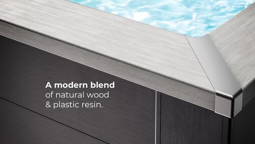 The pool is built from 36 mm composite panels, which combine strength with a natural appearance. The material imitates wood but requires no treatment, does not rot, and does not splinter. It withstands wind, weather, and UV radiation, ensuring that the pool retains its appearance year after year.