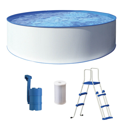 The pool is designed for easy set up on a flat and firm surface. The swimming pool is complete with skimmer pump and ladder all packed in an easy to handle packaging.