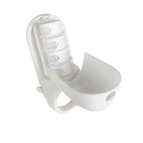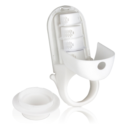Place and secure the spa dispenser on the jet, using the adapter if needed. Add the required capsules to the dispenser based on your spa's size. Enjoy your spa without worrying about maintenance. Replace your capsules with new ones after 1 month.