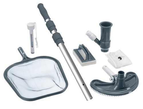 All the basic cleaning accessories, except water care products, you need to keep a small garden pool clean, inviting and ready for use.